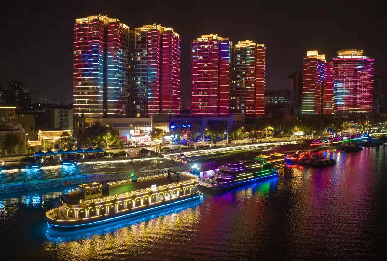 3月27日,夜幕降临,华灯初上。湖北省襄阳市汉江两岸夜色和灯光交相辉映,襄阳古城古色古香,分外美丽。杨东摄