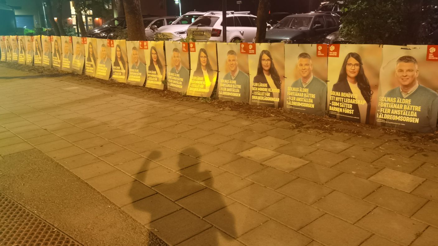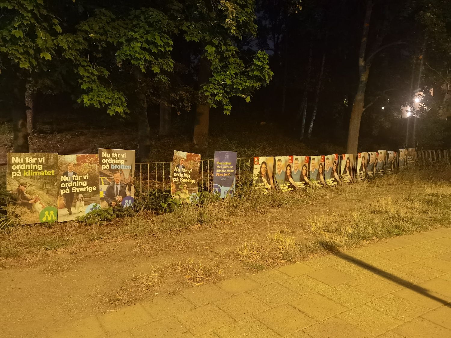 瑞典执政党社会民主党在各大社区的广告阵容极其强大,势必要连任的感觉,广大华人同胞紧握手上的选票,9月将投出自己神圣的一票。/北欧时报图