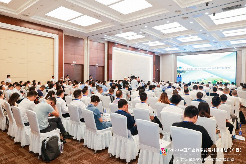 (本报中国南宁讯何彧报道官方供图)7月30日,2023中国产业转移发展对接活动(广西)高端金属新材料产业专题对接活动在南宁举办。本次对接活动以“发挥海边山综合优势承接产业转移,打造高端金属新材料产业发展新高地”为主题,邀请了广西区内外制造业龙头企业、制造业单项冠军企业、专精特新“小巨人”企业等优质企业代表、相关园区负责人,以及媒体等近300人齐聚一堂,共谋打造高端金属新材料产业发展大计。