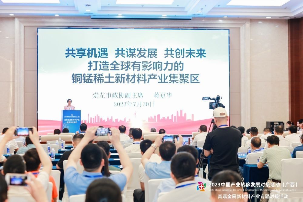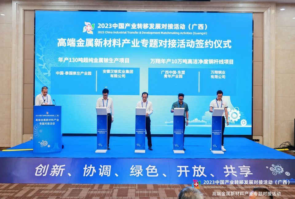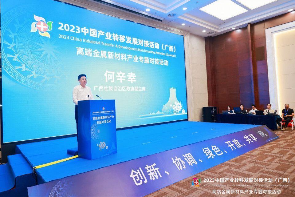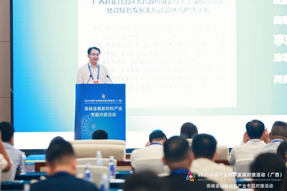 工业和信息化部原材料工业司钢铁处处长文刚表示,广西矿产资源比较丰富,经过多年发展形成了较为完备的产业体系,已建成具有全国影响力原材料产业基地,使之具备了钢铁、有色金属、稀土等新材料领域发展的良好产业基础,像防城港、崇左、河池等市,培育集聚了一批钢、铜、铝等龙头企业,具备更好发挥比较优势、承接高端金属新材料产业转移的条件和空间。希望通过此次产业转移发展对接活动,围绕铜、铝、铅、锌、锡、锑等有色金属深加工、稀土新材料、不锈钢、锰系新材料、高端新型合金材料等领域,深入交流洽谈,务实对接合作,推动广西高端金属新材料产业再上新台阶,也为全国高端金属新材料产业高质量发展贡献力量。