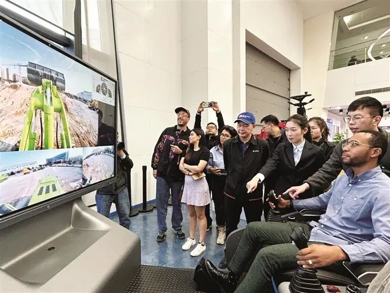 12日下午,外国记者团来到广西柳工机械股份有限公司。在体验了5G智能遥控装载机后,来自捷克共和国的记者赫列娜·科乔娃赞叹不已:“制造业正在向着智能化、绿色化的方向迈进,以后生产的效率会大大提高。”
