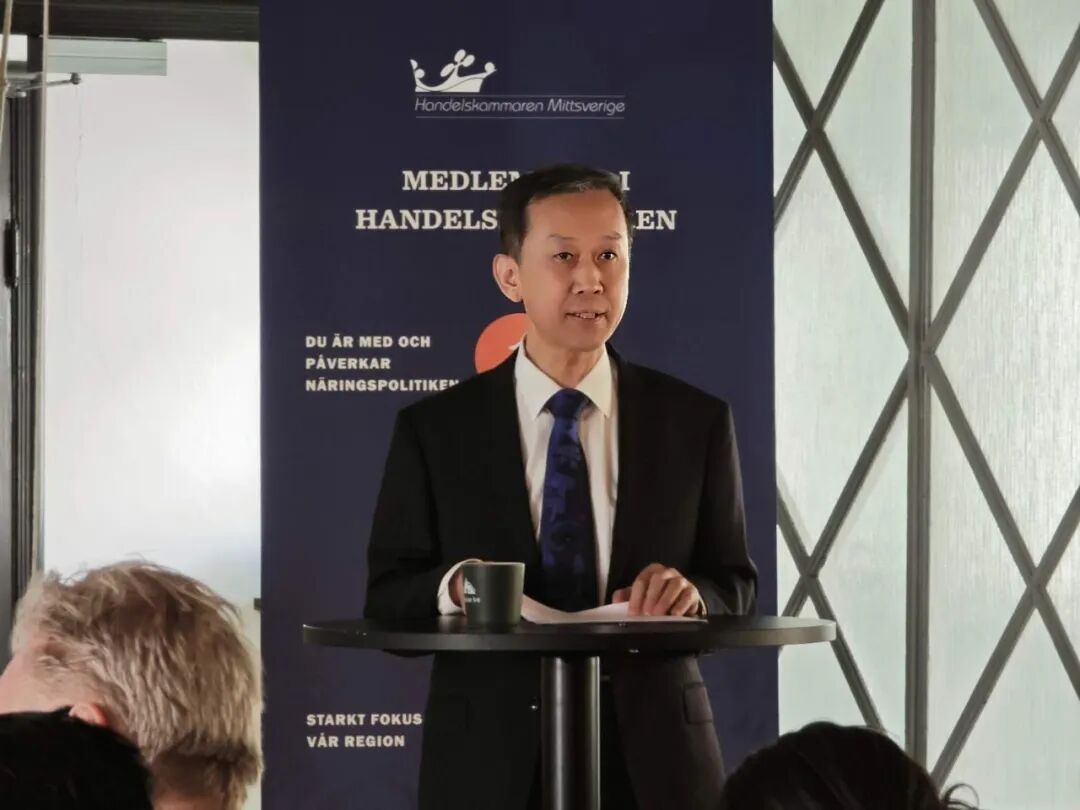 2024年4月10日,驻瑞典大使崔爱民出席瑞典中部商会企业领袖对话会并发表主旨演讲,全文如下:
