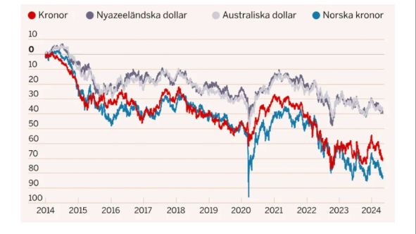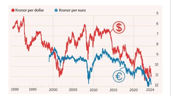 在过去的十年时间里,瑞典克朗更像一艘缓慢下沉的船,而不是一个汇率自由浮动的货币。在克朗贬值的影响下,住房贷款成本越来越高,家庭越来越贫困,整体经济也在悄悄地慢慢地被削弱。本文将尝试解释我们是如何走到这一步的: