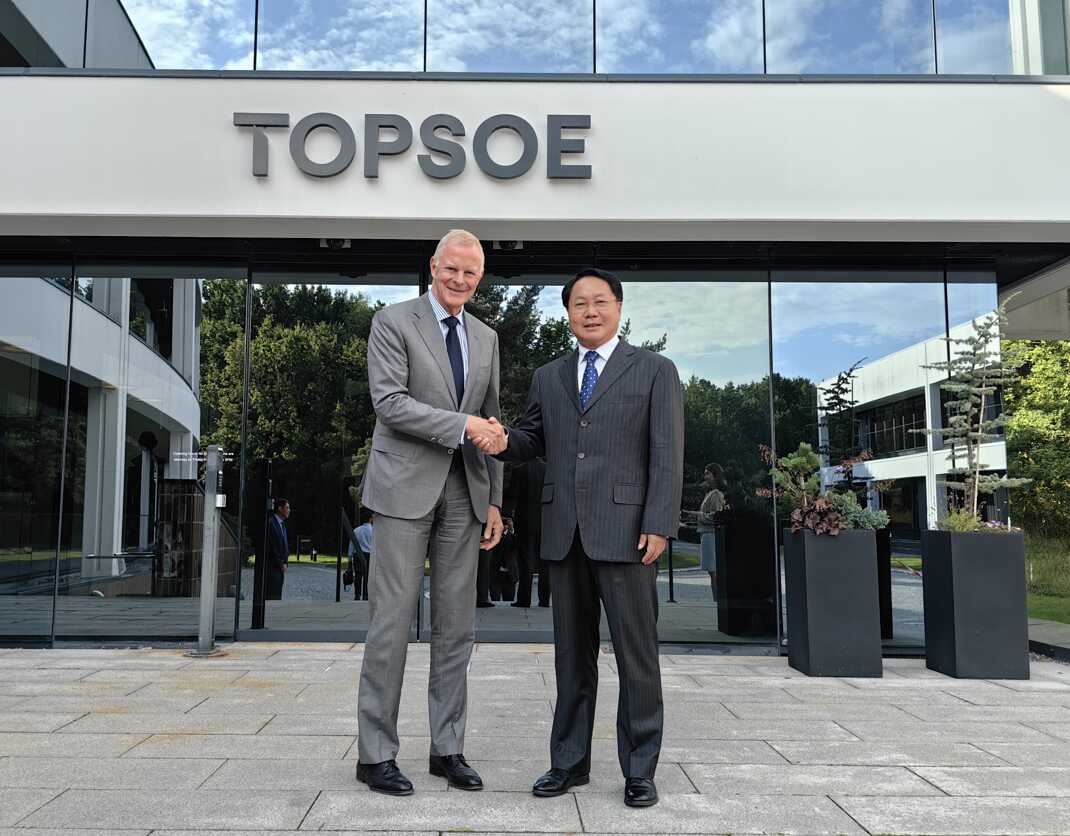 9月16日,驻丹麦大使王雪峰应邀访问丹麦托普索公司(Topsoe),与首席执行官博安进行交流。