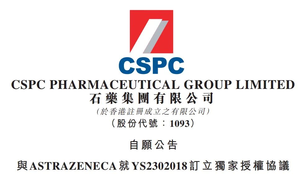 中国石药集团与阿斯利康就YS2302018签订独家授权协议
