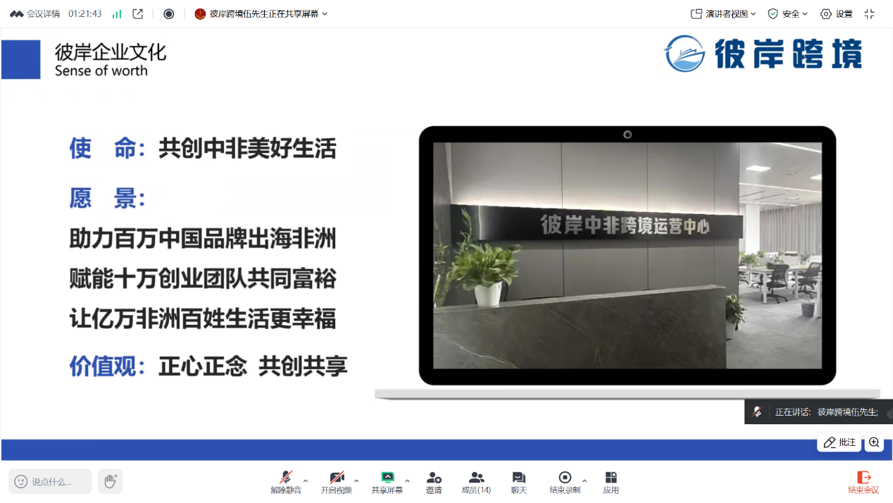 彼岸中非跨境电商运营中心负责人伍宁静先生在会上详细阐述了非洲跨境电商市场所蕴含的巨大潜力与当前的发展契机。他从非洲不断攀升的消费需求,谈到日益完善的基础设施;从丰富多样的自然资源,讲到逐步开放的政策环境,全方位展现出非洲作为新兴市场的强大吸引力。同时,他还分享了非洲跨境电商独立站+Facebook+COD的经验与模式,为中国产品进军非洲市场提供了坚实的市场依据。