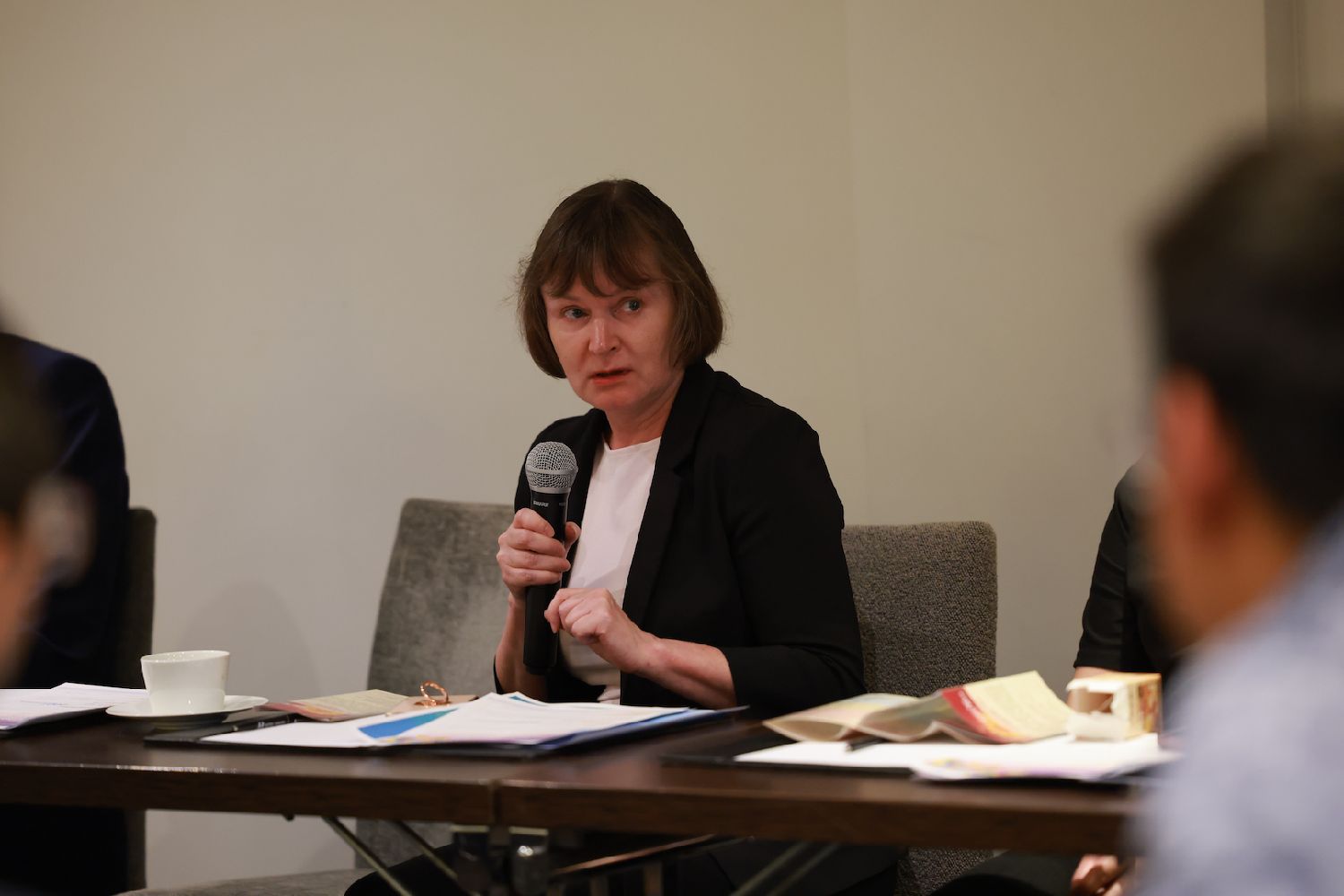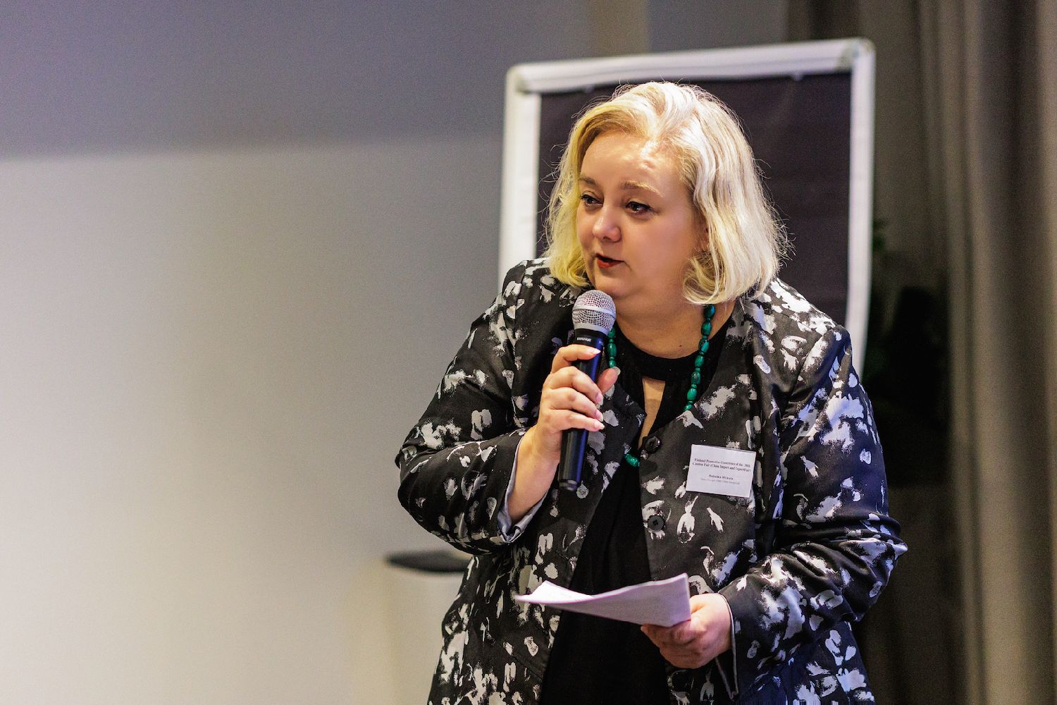 Kiinan Ulkomaankauppakeskuksen ulkomaanyksikön službapuheenjohtaja Liu Xīnlìesitteli messujen erityistoimia Pohjoismaiden markkinoille:korkealaatuisten näytteilleasettajien valinta,immateriaalioikeuksien suoja,ostajatuki–kaikki parantaa ostaja–näytteilleasettaja-kokemusta.