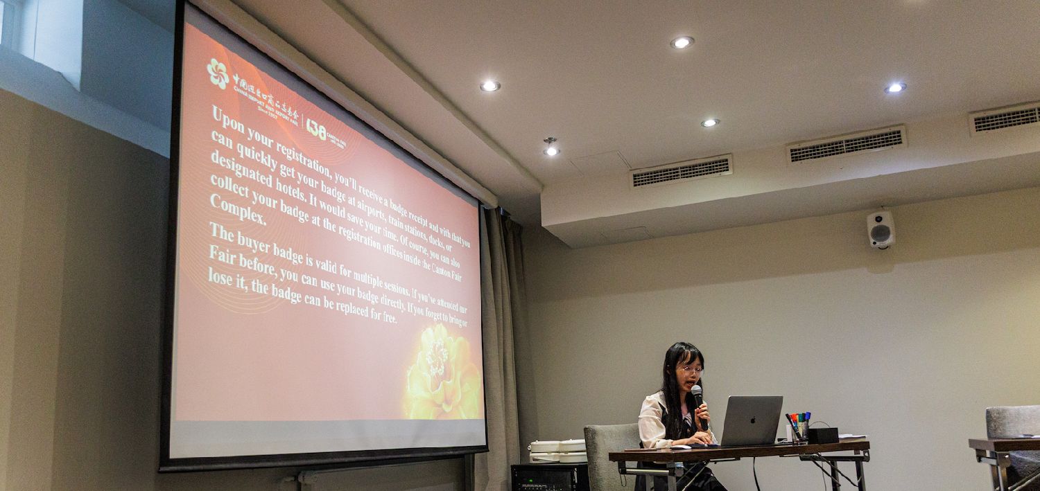 中国对外贸易中心外联部国际VIP服务事务员工刘欣莉女士进一步向芬兰企业代表展示了广交会对北欧市场的关注与支持,从高质量展商筛选机制、知识产权保护政策,到外商服务接待体系等,全方位保障采购商与展商的权益和效率。