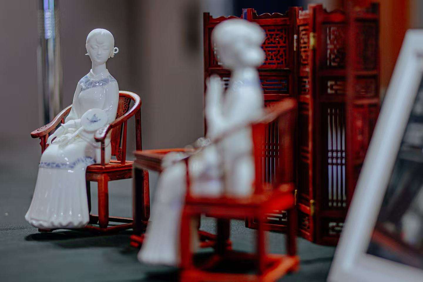 展厅内灯火辉煌,展台上一件件德化白瓷作品在柔和灯光的映照下熠熠生辉,玲珑剔透、温润如玉的质感让来宾们不时驻足欣赏。现场既有精巧的瓷雕人物,也有典雅的茶具摆设,每一件都透出千年瓷都的匠心神韵。在场的参观者们纷纷举起手机拍照留念,无不被德化白瓷的精美工艺和独特魅力所深深吸引。