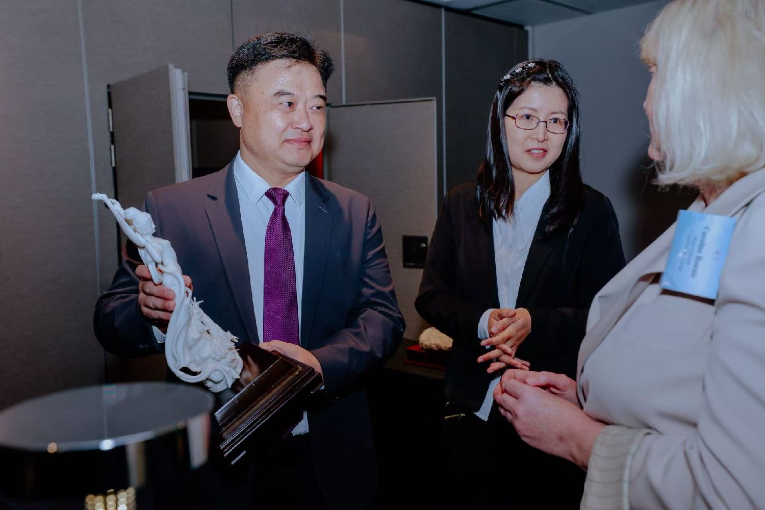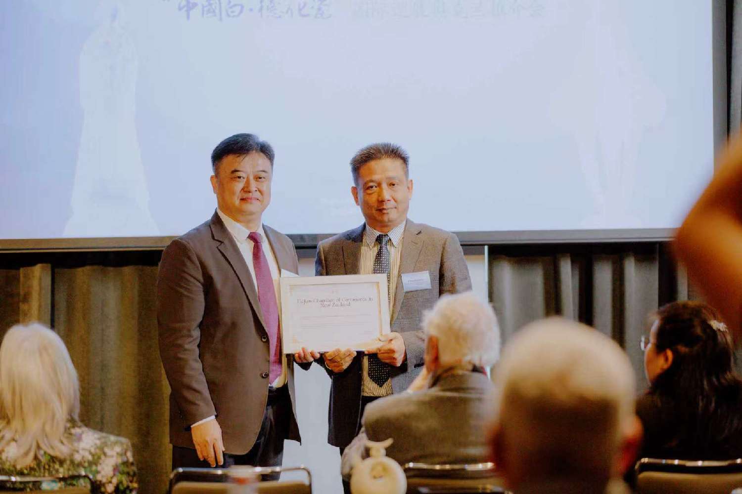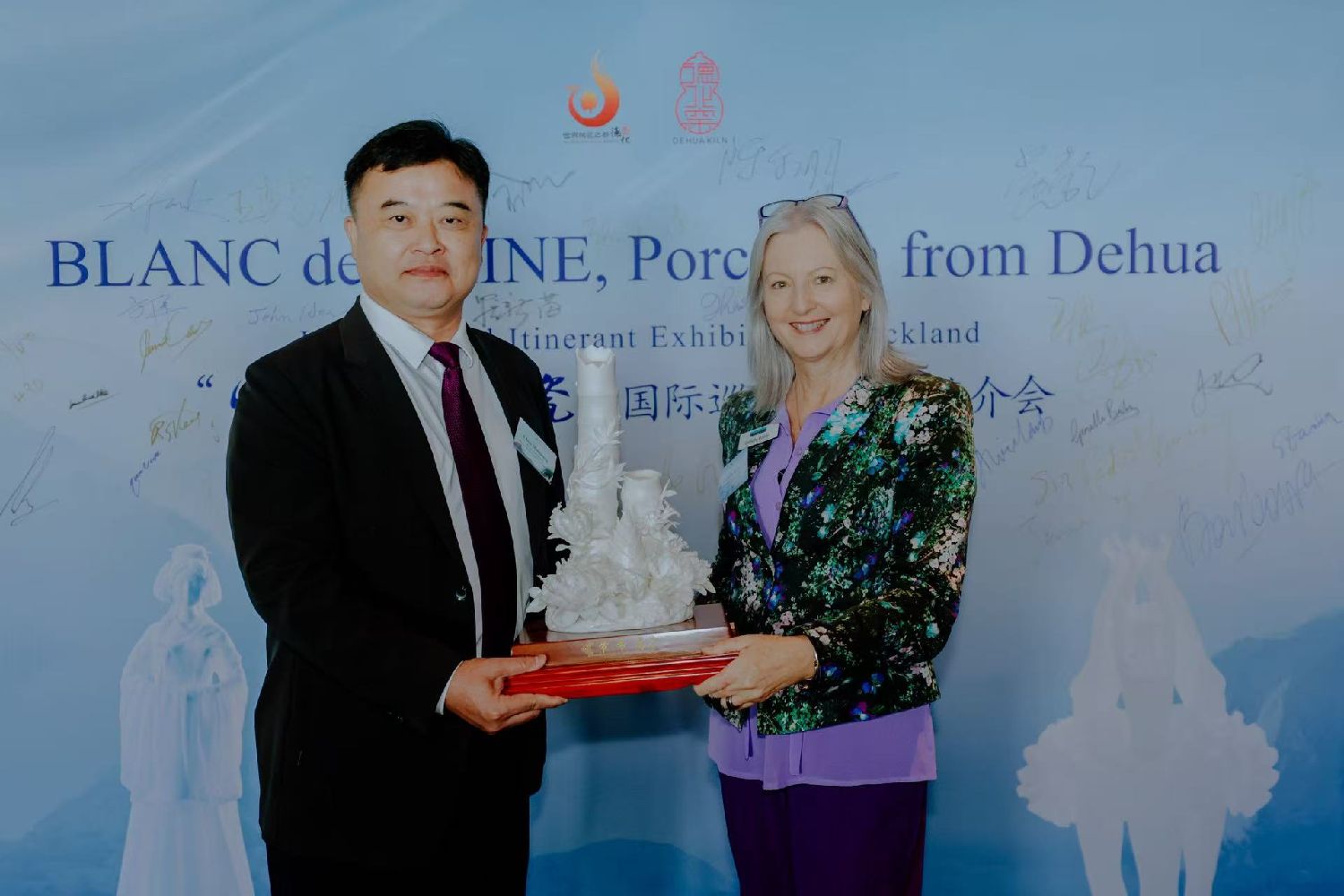 随后,楼柏芊领事、Bob Harvey爵士及奥克兰商会代表Genelle Bailey先后上台致辞,分别对德化白瓷的悠久历史、精湛工艺及其在中新文化交流和经贸合作中的重要作用表示高度赞赏,并对中新两地在文化、贸易与投资领域的进一步合作寄予美好期望。