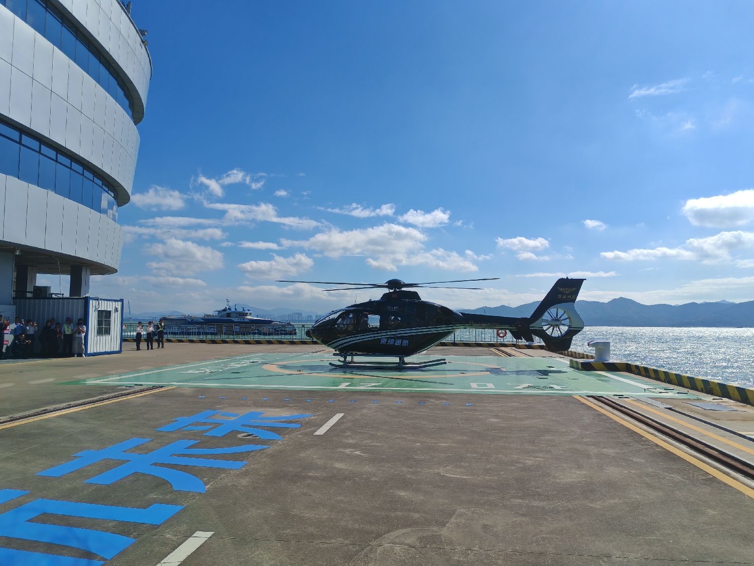 當天上午,在深圳國際郵輪母港迎來歷史性一刻:在1號泊位,兩架次來自深圳市東部通用航空有限公司的跨境直升機搭乘着首批乘客,先後完成從澳門國際機場至蛇口、從蛇口至香港信德直升機機場的飛行。這不僅填補了深圳至澳門的直升機航線空白,也為深圳蛇口至香港信德直升機機場增加了新的選擇。