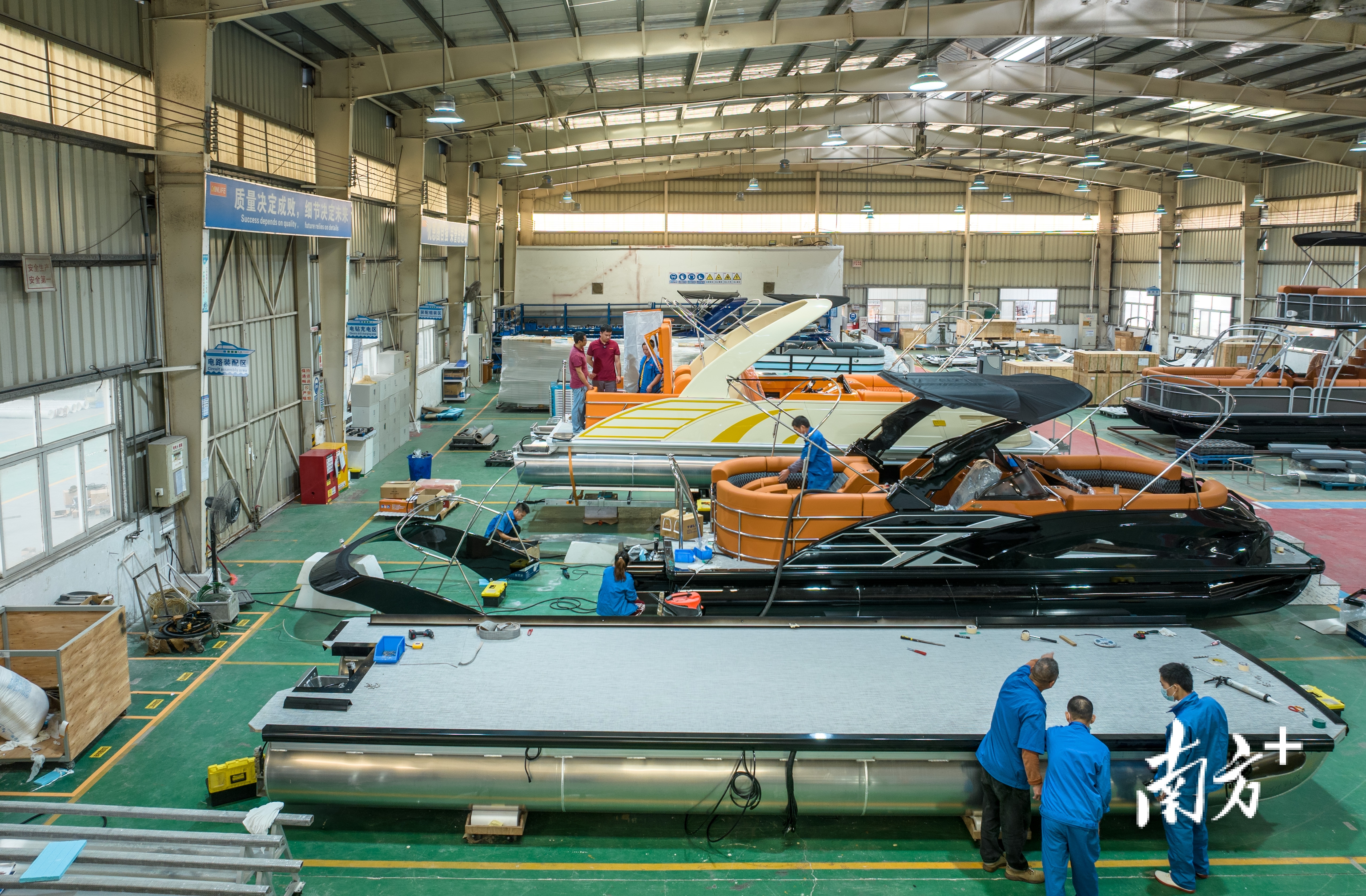 奇航生产车间内工人们正在组装船只。廖明璨摄