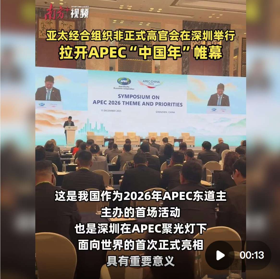 视频|2026APEC首场会议在深圳举行!21个经济体代表参会