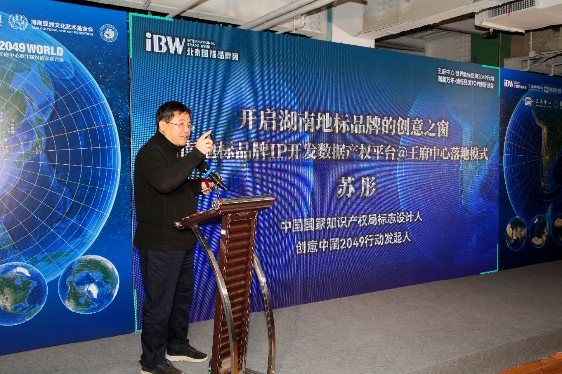 研讨会现场,行业大咖云集,思想碰撞激烈。梁中国主席首先对到场嘉宾表示热烈欢迎,并详细介绍了会议背景与核心议程;同时,以《“地标品牌+”引领区域经济高质量发展》为题,对地理标志(GI)的基本概念、国家地标产业百亿工程等项目进行介绍,为活动拉开序幕。中国国家知识产权局标志设计人、创意中国2049行动发起人苏彤带来主旨报告《开启湖南地标品牌的创意之窗——湖南地标品牌IP开发数据产权平台@王府中心落地模式》,深入剖析了地标品牌IP数字化转型的核心逻辑与实践路径,为湖南地标品牌创新发展提供了顶层设计思路。