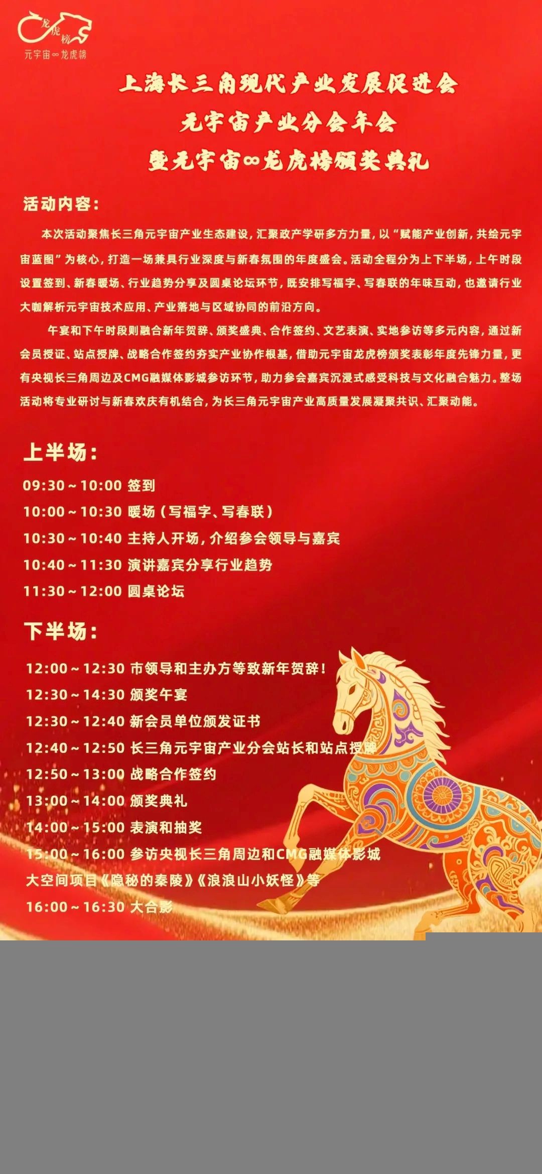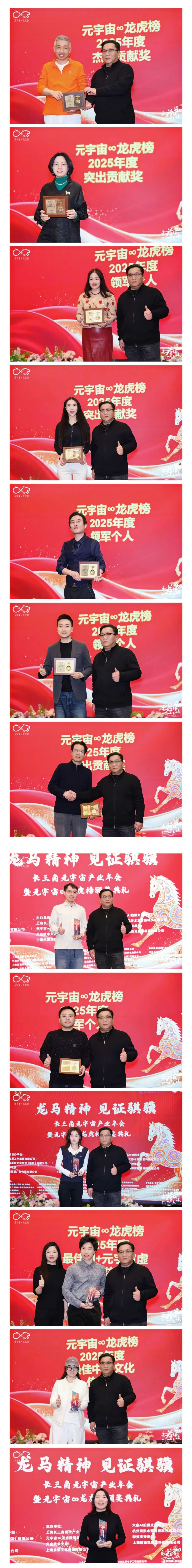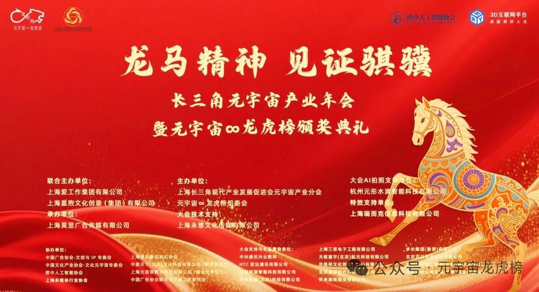 作为长三角元宇宙产业发展的推动者与见证者,上海长三角现代产业发展促进会·元宇宙产业分会(以下简称“主办方”)始终坚持以“推动区域现代产业一体化、构建元宇宙生态新格局”为使命。2026年2月7日,主办方和元宇宙♾️龙虎榜强强联合,并携手上海爱工作集团、上海嘉煦文创集团等联合主办方及元宇宙各方力量,成功举办了长三角元宇宙产业年会暨元宇宙∞龙虎榜颁奖典礼。