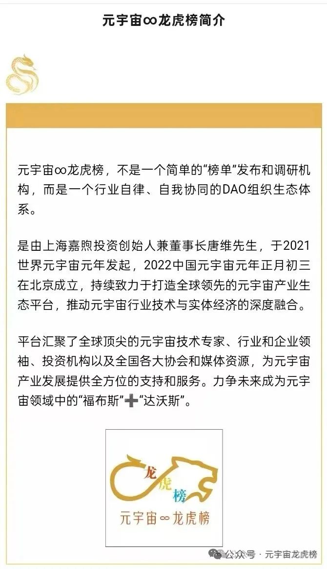 最受瞩目的“元宇宙∞龙虎榜2025年度颁奖”,这次我们采用以企业为获奖主体的颁奖形式,项目的成功或许藏着偶然的惊喜,但企业,才是孕育好项目的沃土。