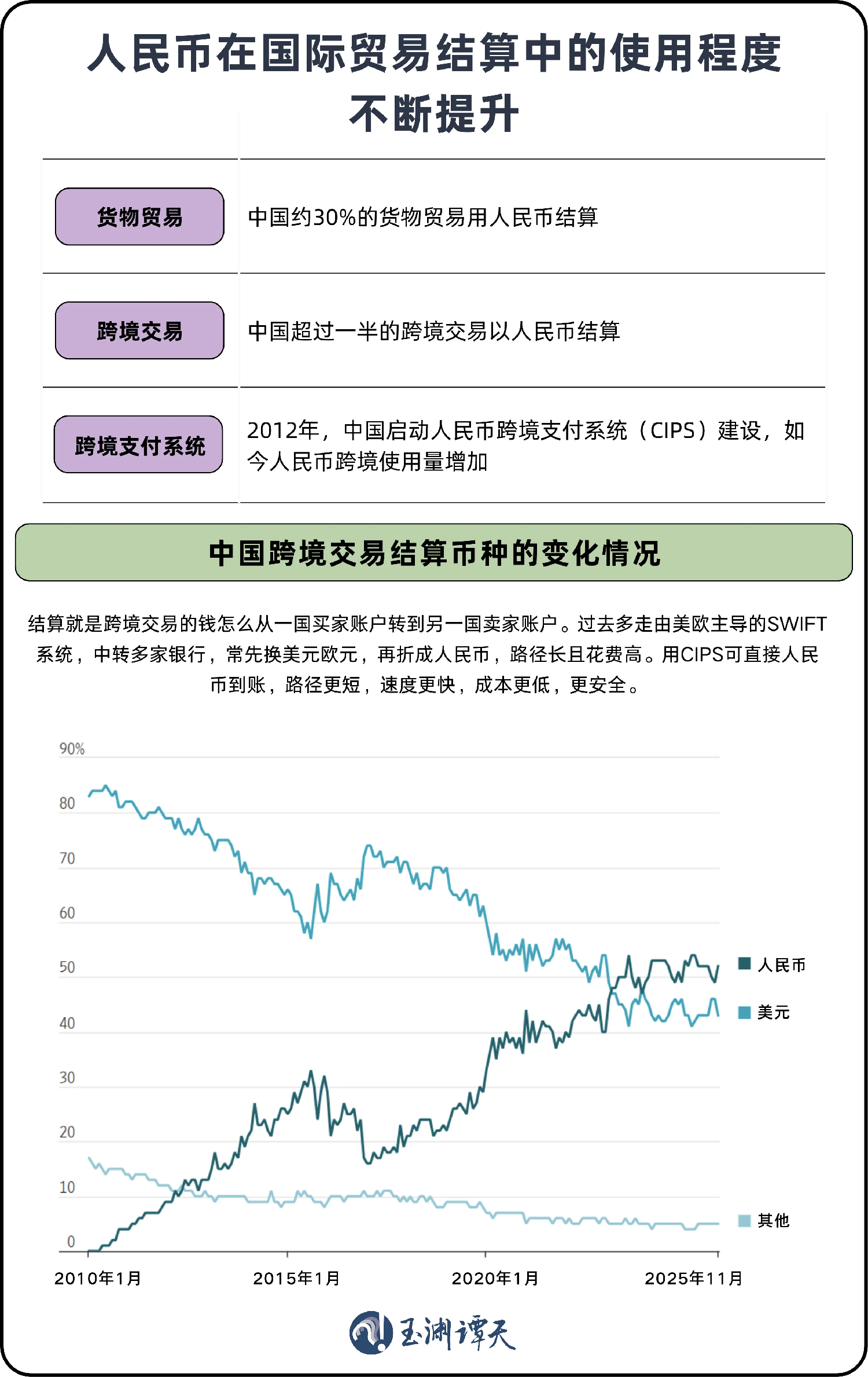 ||一部分人民币结算也正在从欧美主导的SWIFT系统转向中国的人民币跨境支付系统CIPS。