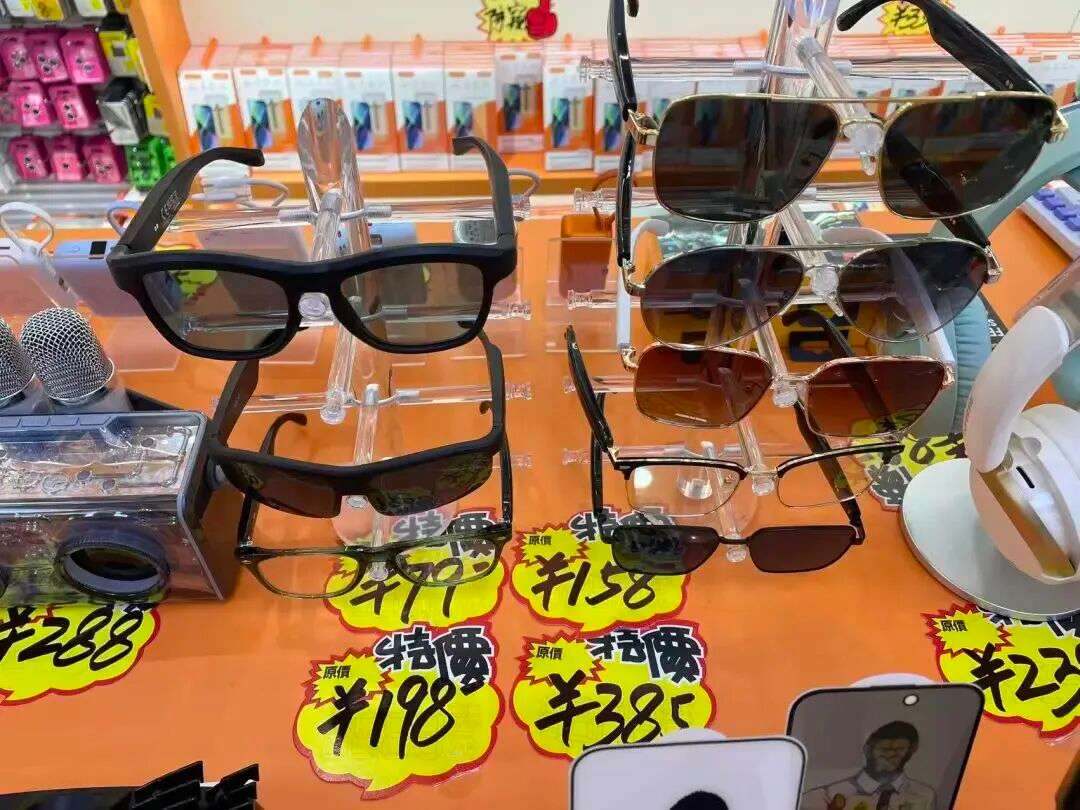 从华强电子世界到赛格电子市场,各式各样的AI眼镜被摆在了最显眼的位置。AI眼镜价格从100元多至5000元不等。一位正在试戴的消费者对着镜子左右打量着新“装备”,笑道:“这玩意儿比想象中轻,戴着不像是科技产品,倒像是个时髦的配饰。”