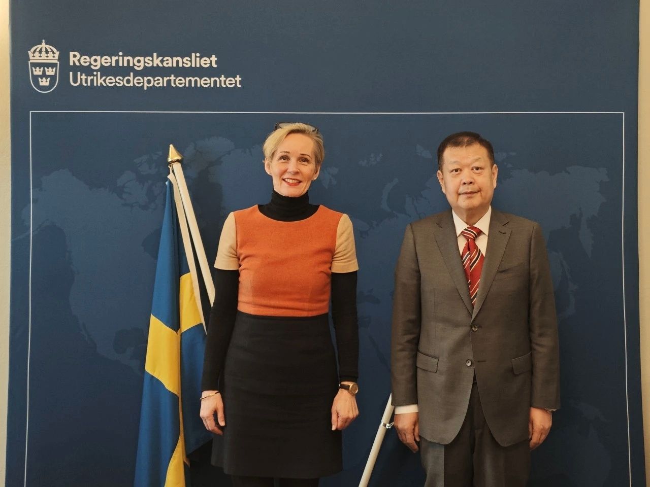 2026年4月1日,中国驻瑞典大使周立民会见瑞外交部外贸总司长梅兰德。双方就中瑞经贸关系等议题深入交换意见,一致认为近年来两国经贸合作取得积极进展,应进一步加强沟通交流,在多个领域推动产业合作,共享发展机遇。