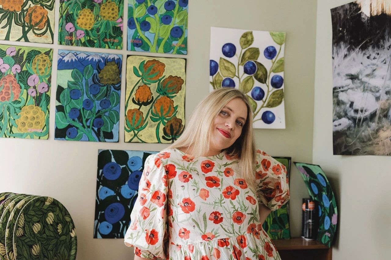 从小热爱艺术、现全职创作六年的她,活跃于瑞典和国际艺术舞台,同时从事图案设计与插画委托。她的灵感来自自然——宏大的风景,以及植物、花朵和浆果等微妙细节。