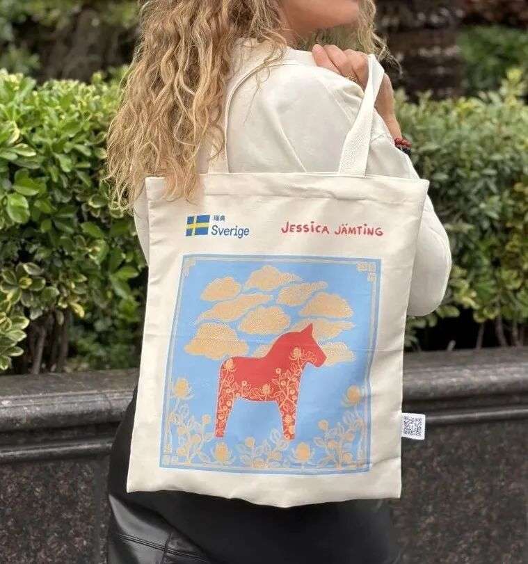 为了庆祝中瑞文化交流,我们与来自瑞典哥德堡的艺术家Jessica Jämting一起打造了一款特别设计的环保帆布包。作品融合了北欧自然意象、中国文化符号与艺术家的个人视觉语言,是一次富有想象力的跨文化合作。