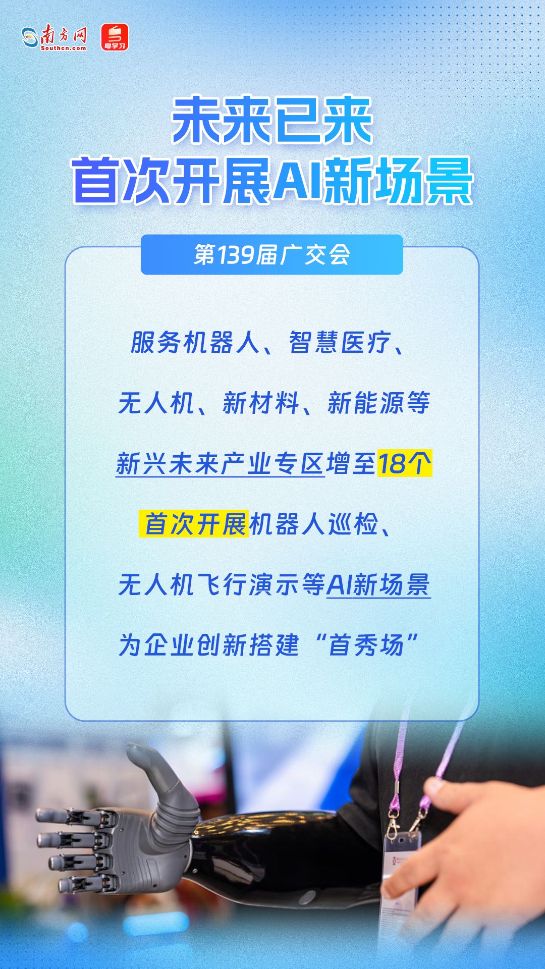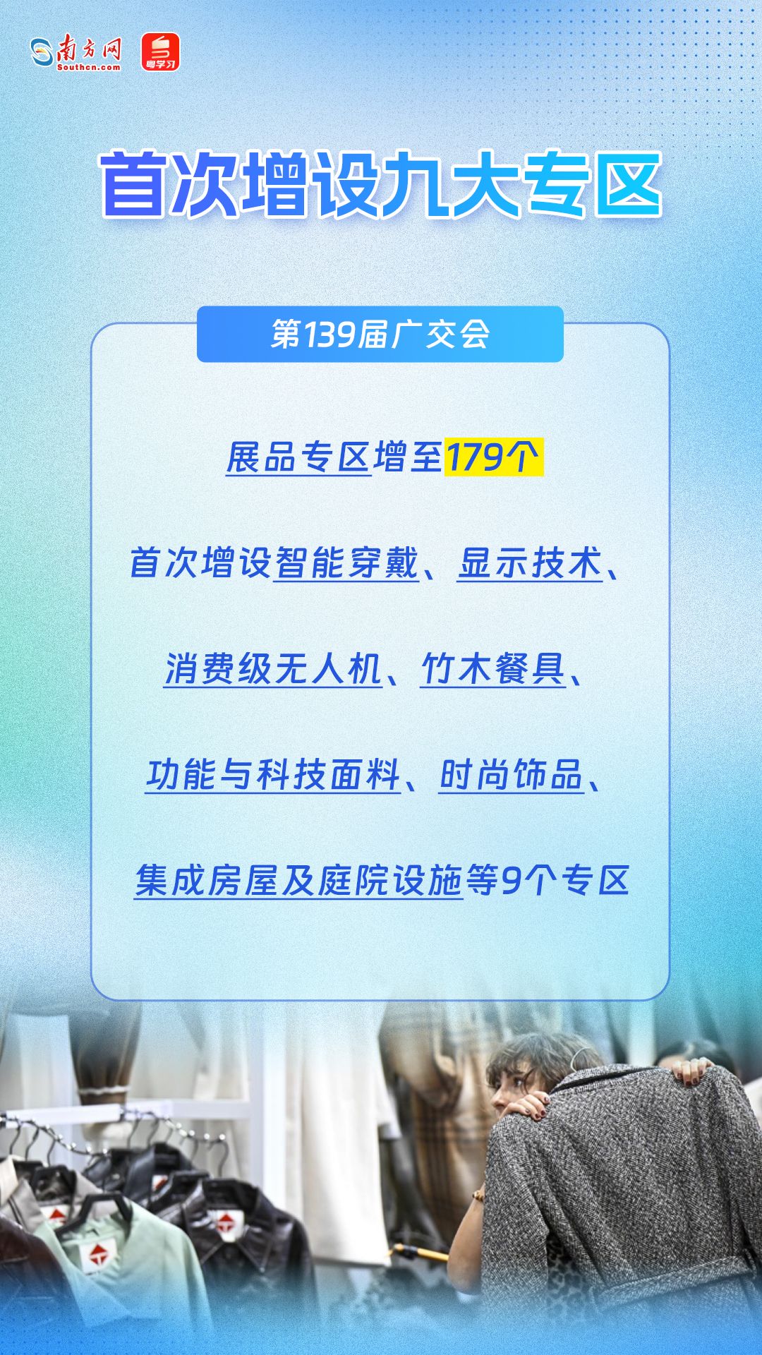 第139届广交会将于4月15日至5月5日在广州分三期举办,展览总面积、展位总数、参展企业数均超往届水平,约3900家企业首次亮相,首次增设智能穿戴、显示技术、消费级无人机、集成房屋及庭院设施等9个专区。本届广交会亮点纷呈,一组海报带你速览!