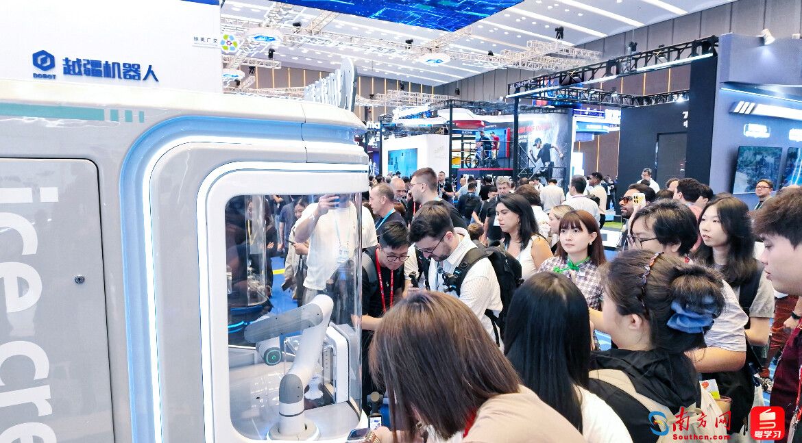广交会现场,越疆冰淇淋机前人头攒动。