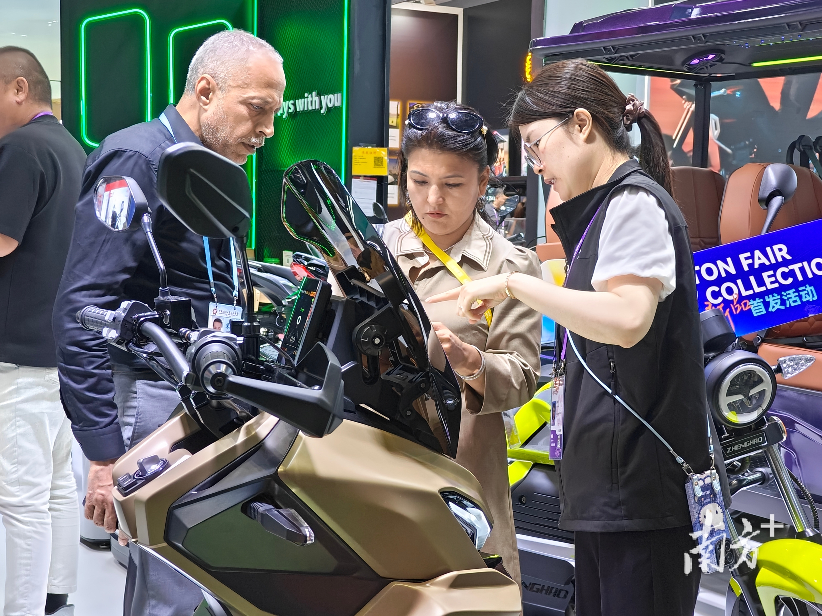 来自法国的摩托进口商马格拉马尼是参加过60届广交会的“老广交”。一踏进广交会摩托车展区,他的手机相册里又添了几十张中国展车的照片。20年前,他刚开始从中国采购产品,那时中国摩托车的质量在国际上还没有很强的竞争力;如今,他代理的中国品牌在法国销量已突破1000台。