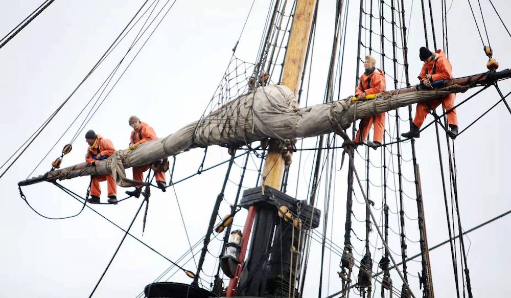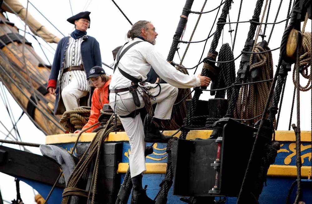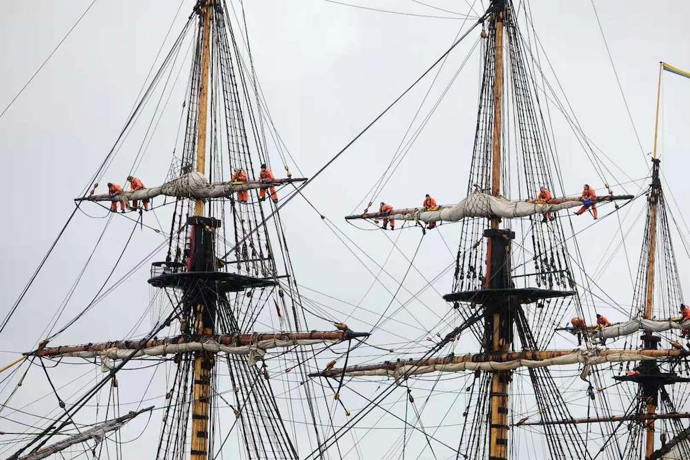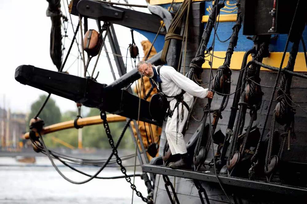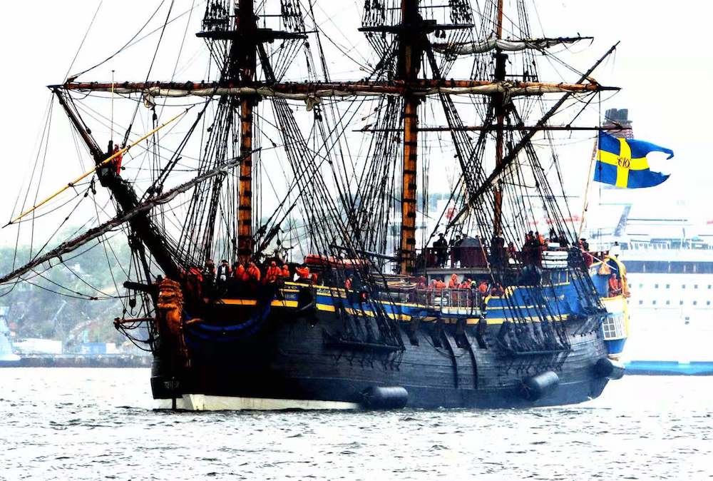 秋雨霏霏中,代表中瑞友谊的仿古帆船“哥德堡号”8月26日下午到达斯德哥尔摩,为将在明年春季启航到上海航程作热身准备。哥德堡号完全按照18世纪航行习俗,在驶入港口时鸣放礼炮,水手登上三个桅杆高处向斯德哥尔摩致意!船长走下船向大家挥帽致敬!(摄影版权图片: 庞其铭)