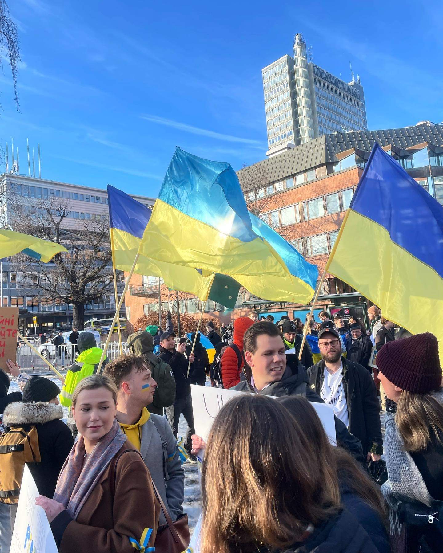 俄罗斯攻入乌克兰后,瑞典民众到俄罗斯驻瑞典使馆外示威抗议/保罗