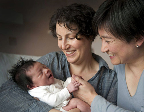 黃英賢(右)、阿洛維奇與她們的第二個女兒:借精育兒