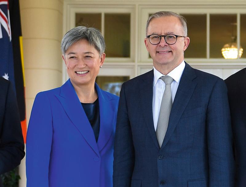 澳洲新任外長黃英賢與澳洲新任總理阿爾巴內塞(右):戲劇般的人生奇蹟為人津津樂道(圖:歐新社)