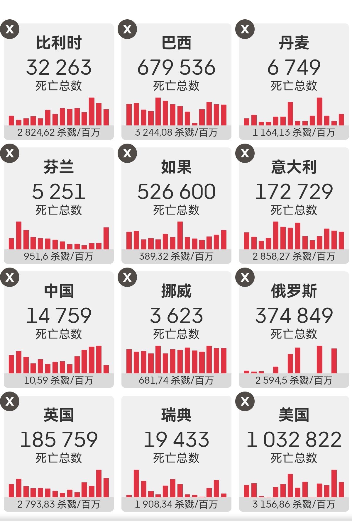 北欧和世界其他国家新冠总死亡数据。/数据来源瑞典国家卫生局