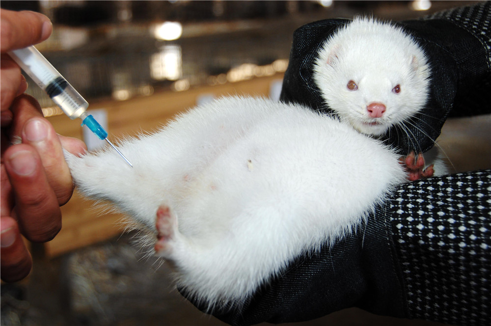 芬兰为养殖貂接种实验性新冠疫苗。(图片来源:新华社)