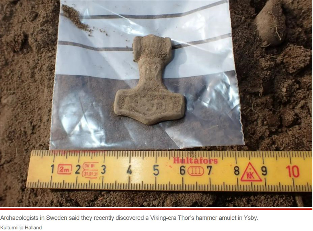 【北欧时报11月18日青简编译】瑞典西南部哈兰省的伊斯比(Ysby)近日出土了一个保存完好的神秘维京护身符,形状酷似“雷神之锤”。考古学家表示,这是一个“独一无二”的发现。
