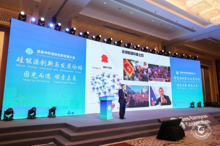 江门市人民政府副市长郑晓毅在致辞中指出,近年来,江门市大力推动企业绿色低碳转型,举全市之力建设广东(江门)硅能源产业基地,重点发展硅能源材料、器件、模组、终端应用等产业。目前江门市从事光伏组件及相关部件制造、光伏发电及储能材料的企业超300家,年产值超240亿元,逐步形成了较为完整的“光伏玻璃-电池片-胶膜-背板”产业链。全球领先的硅能源龙头企业隆基绿能科技股份有限公司10GW单晶组件等项目的引进,将进一步壮大江门市光伏产业集群,带动江门市光伏产业跨越式发展。江门市将不断提升优化发展环境,继续深化中欧在绿色发展中的务实合作,推动硅能源产业走专业化、特色化、高端化道路。