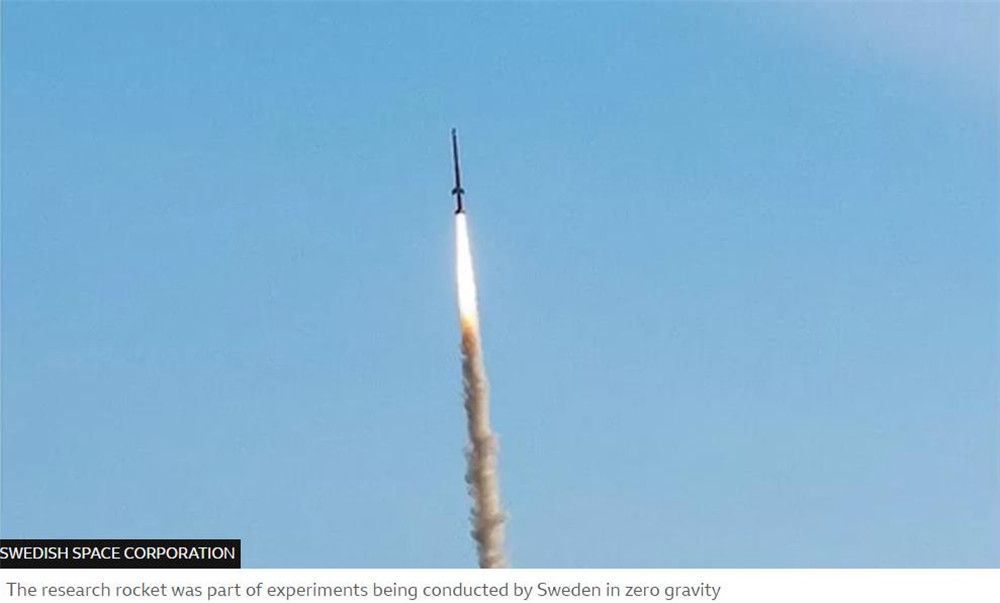 研究火箭是瑞典在零重力下进行的实验的一部分。(图片来源:英国广播公司BBC网站截图)