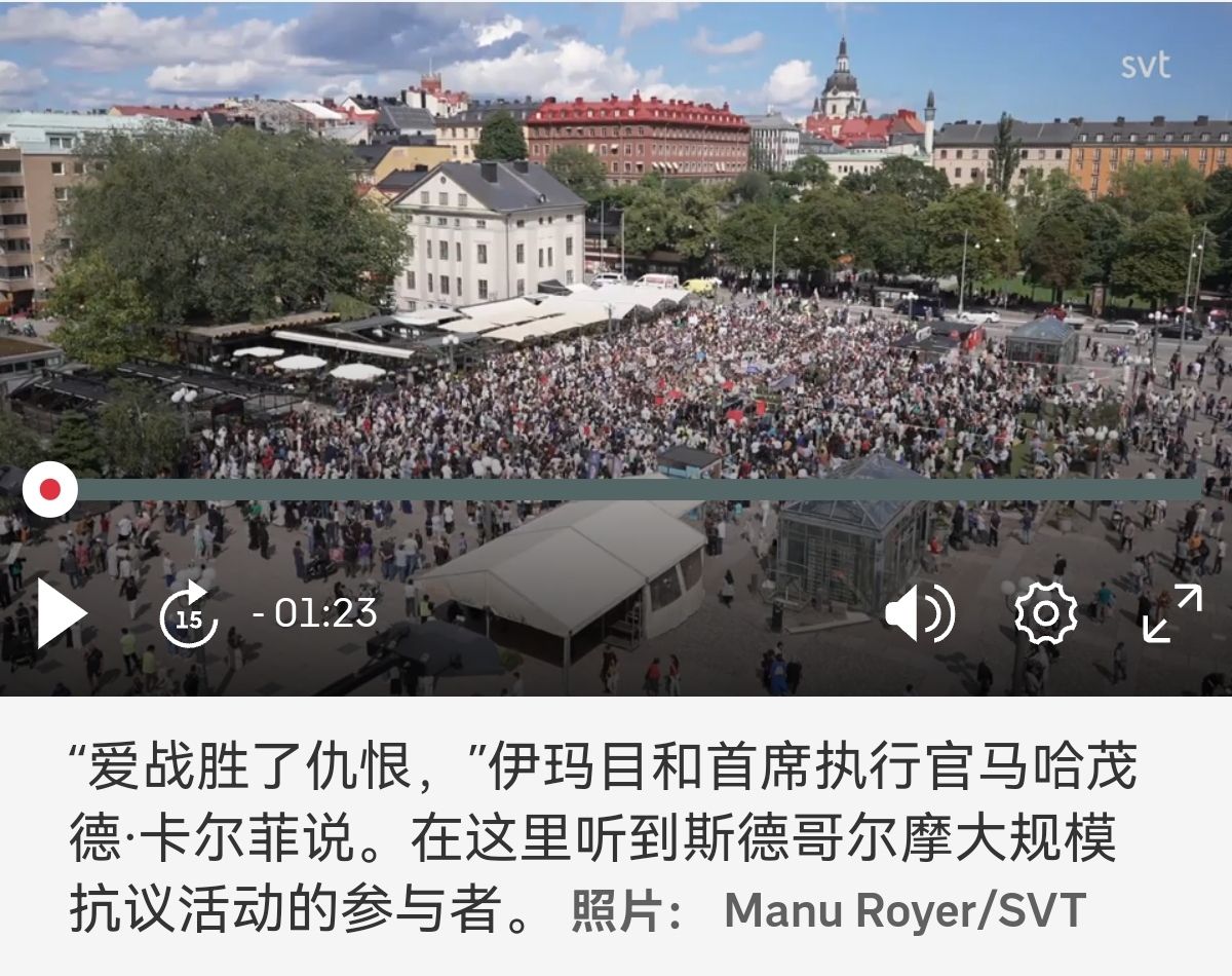 焚烧古兰经后的瑞典周日大型示威:“爱战胜仇恨” Jättedemonstration efter koranbränningar: ”Kärleken vinner mot hatet”