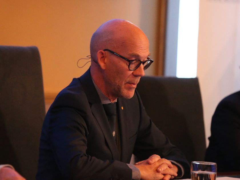 评委会主席雅克布(Jokob Svensson)答记者问。/北欧时报图