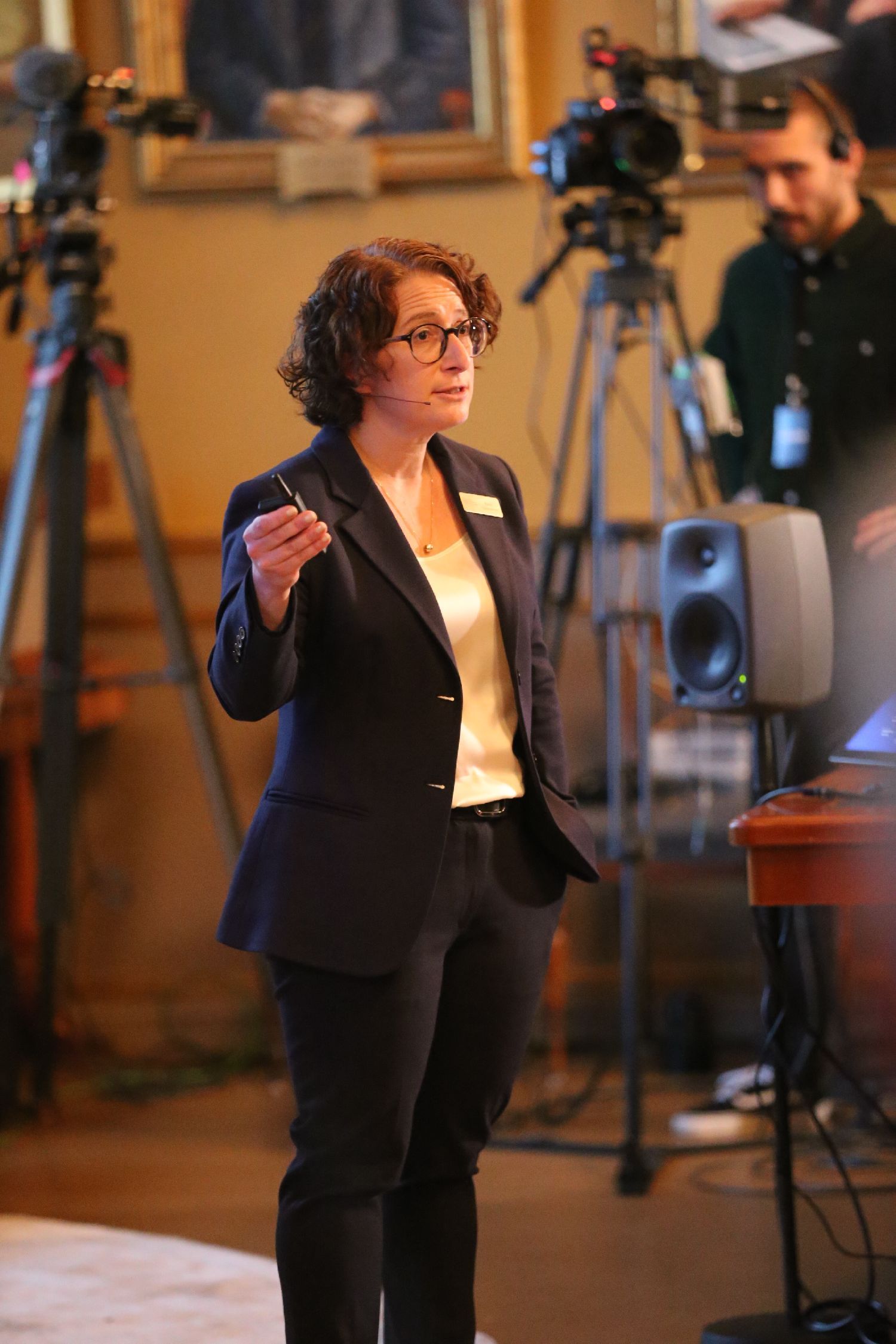 北欧时报经济学记者李格非在现场提问。/北欧时报图