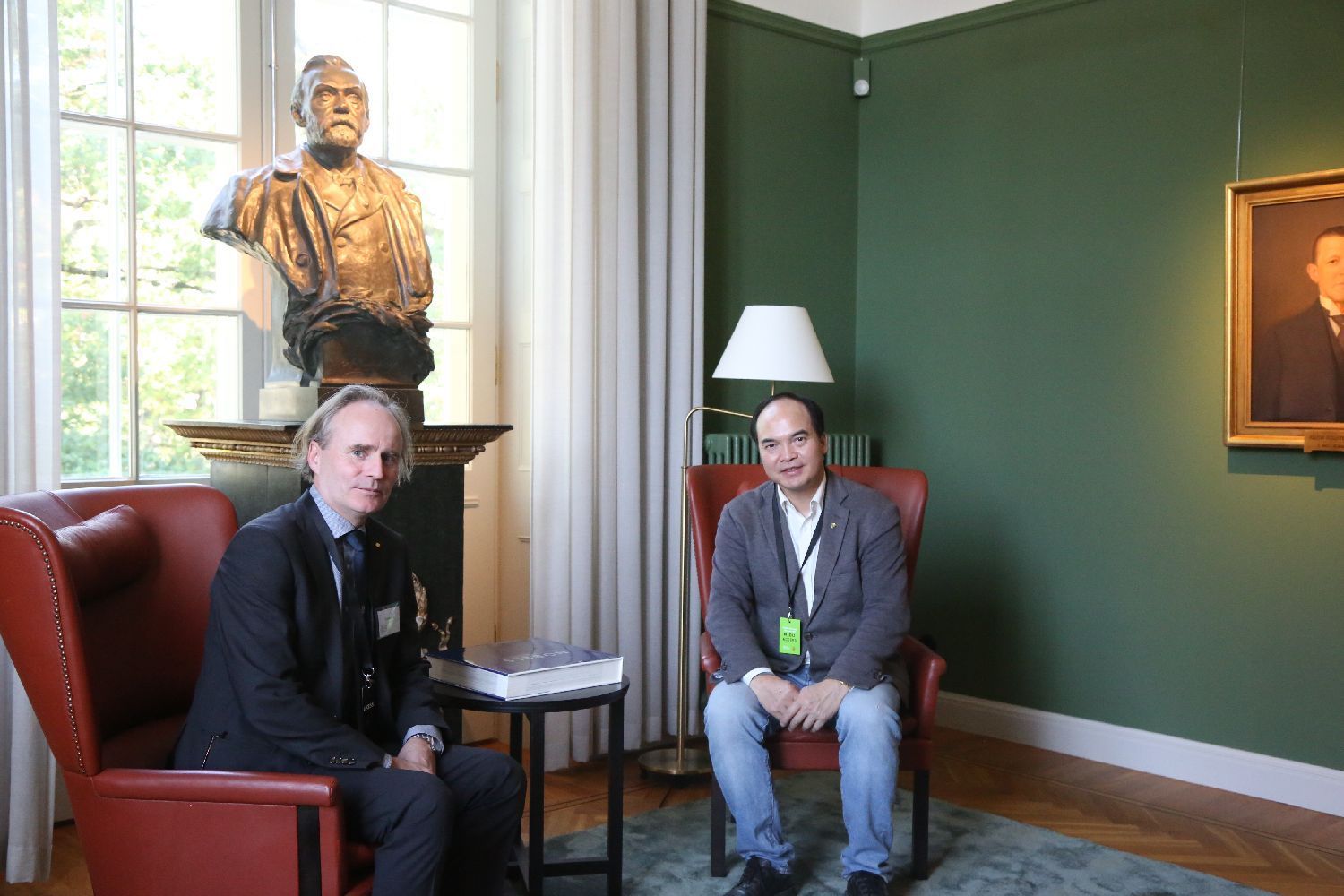 采访结束后,艾德林教授与北欧时报社长合影留念。Foto:Nordic Chinese Times