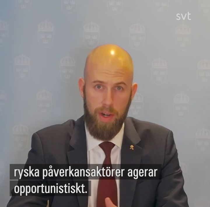 他说:“影响力行动者开始传播错误引述和对所说内容的纯粹扭曲。当然是为了损害瑞典,瑞典安全政策利益,并在瑞典社会中助长极端化。同样在这里,我们看到俄罗斯支持的行动参与了这场运动。”