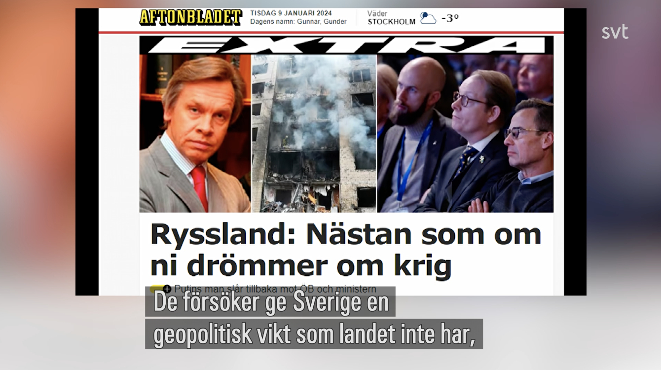在瑞典可能很快陷入战争的声明之后,俄罗斯等国做出了反应。视频链接:瑞典电视台