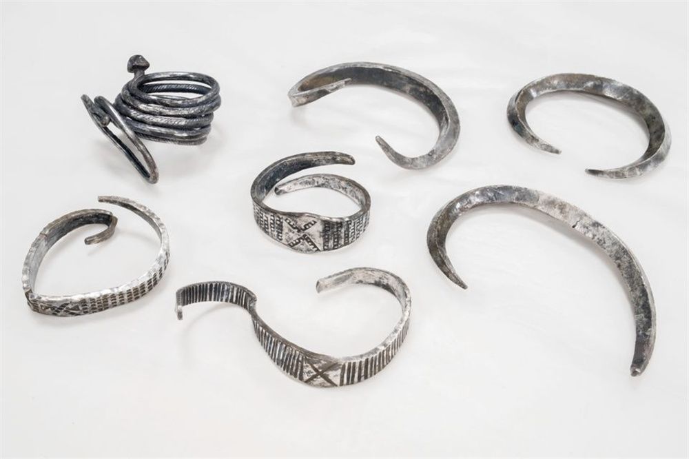 7件来自维京时代的稀有银手镯。(图片来源:莫斯加德博物馆)