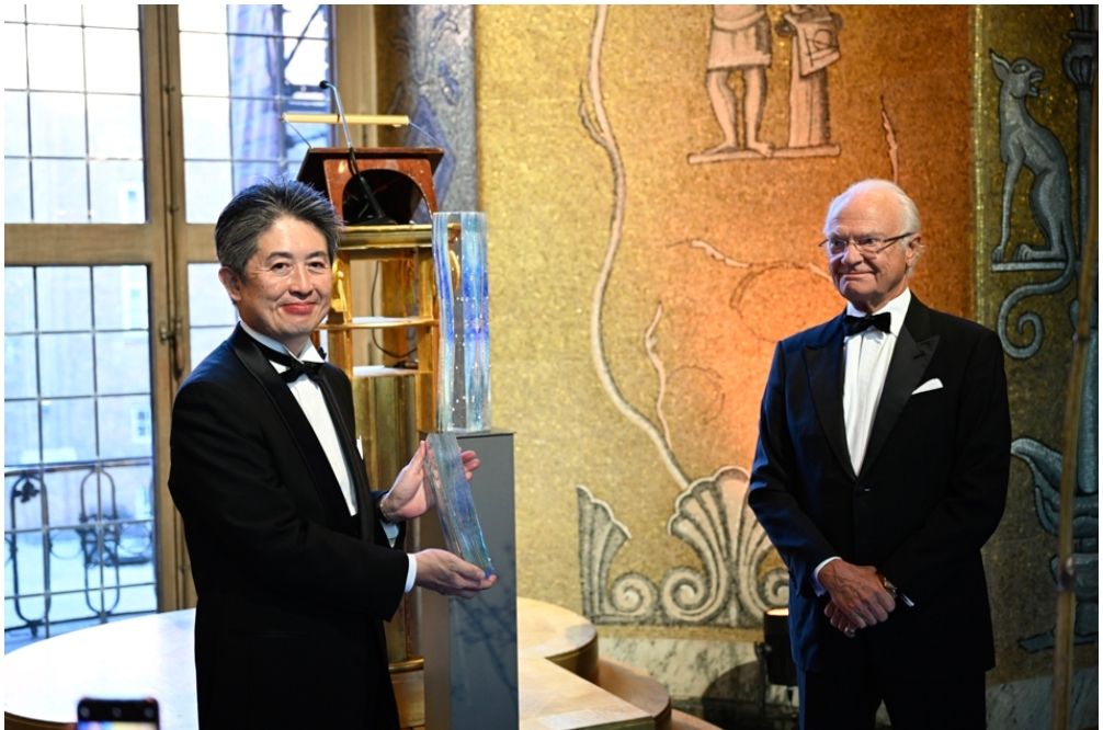 国王向Taikan Oki教授颁发了斯德哥尔摩水奖。照片:Pontus Lundahl/TT