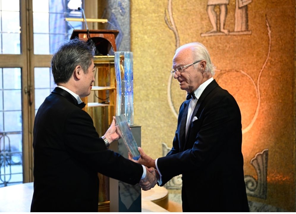 当晚,国王向Taikan Oki教授颁发了斯德哥尔摩水奖。这位教授因其在虚拟水交易、河流数字地图以及将人类活动纳入水循环方面的研究而获奖。