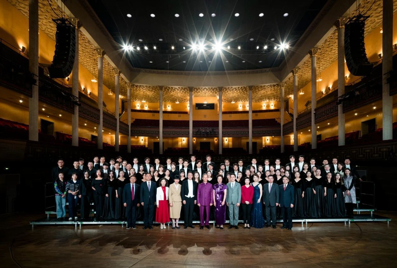 演出结束后,崔爱民大使夫妇等与全体艺术家合影留念。