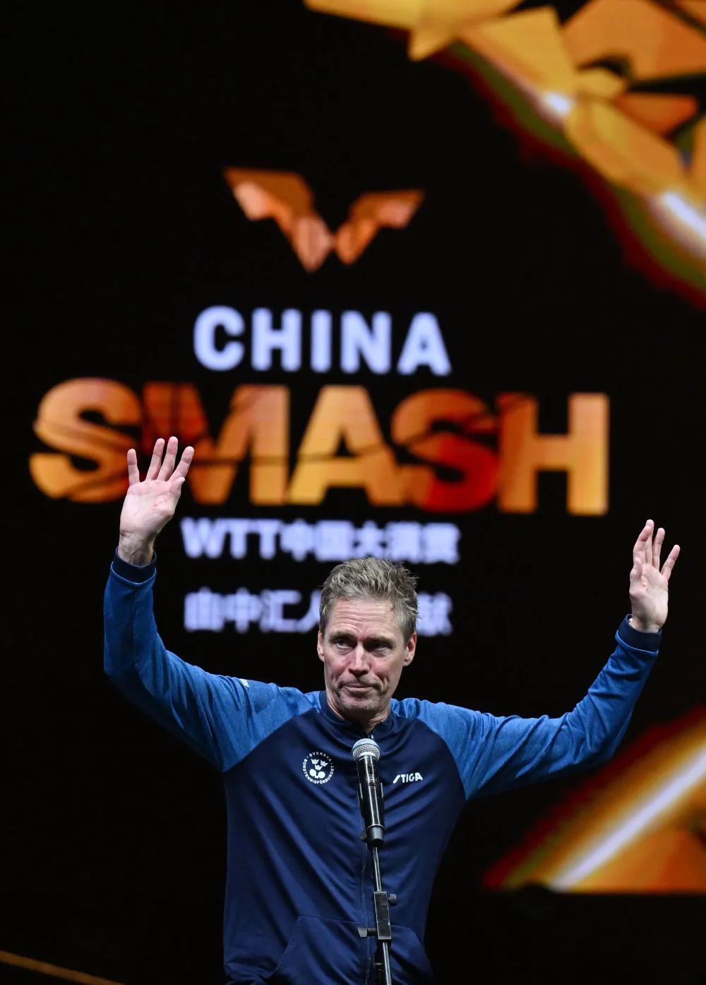 突然,还在情绪中的佩尔森被现场DJ吓了一跳:“今天是瑞典主帅佩尔森执教生涯最后一场球,让我们把最热烈的掌声送给这位乒坛传奇人物……”