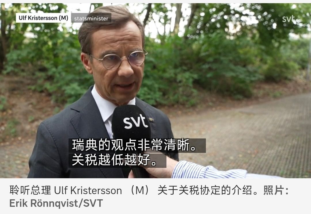 瑞典首相乌尔夫·克里斯特松(Ulf Kristersson,属温和党)表示,瑞典对关税的基本立场没有改变。