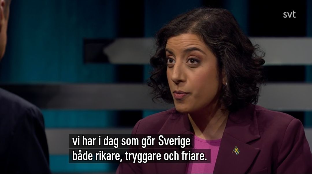 在周日晚间的《Agenda》节目中,主持人追问党魁穆罕默松:若乌尔夫·克里斯特松(温和党)打算组建一个包含瑞典民主党的政府,自由党是否真的会投票反对其出任首相?